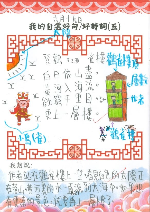 二年級《中華文化誦樂樂-我的自選好句好詩詞》 學生︰朱芷穎