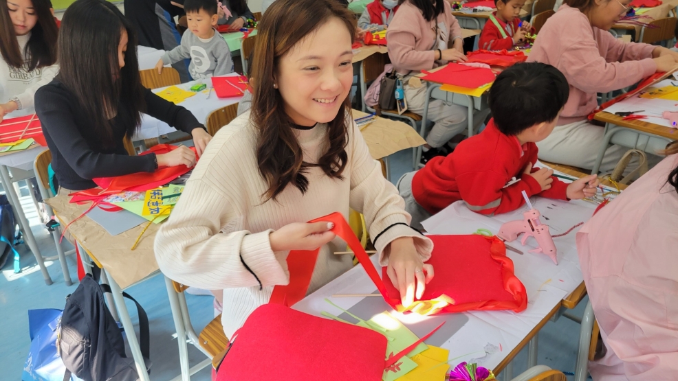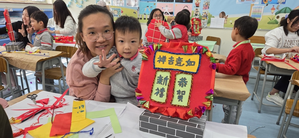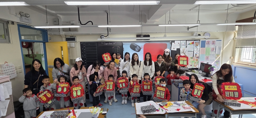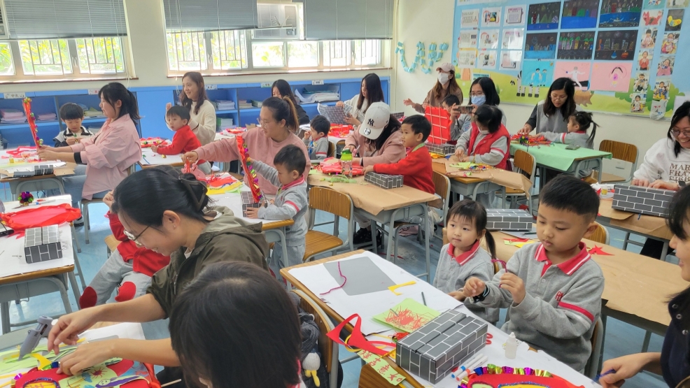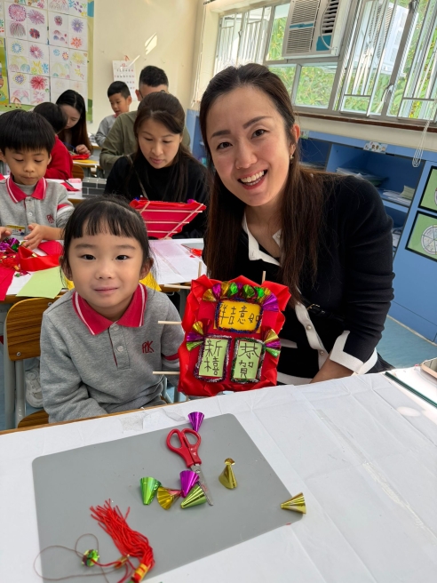 保良局幼小同盟活動:本校邀請保良局蔡冠深幼稚園的學生及家長到本校參加小型花牌紮作工作坊。