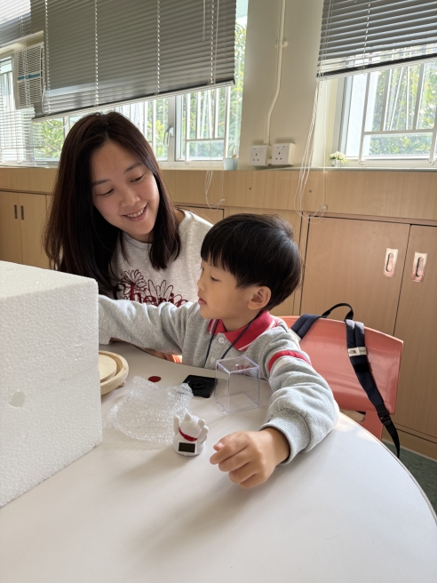 保良局幼小同盟活動:本校邀請保良局廖烈正幼稚園的學生及家長到本校參加靜觀永生花水晶球工作坊。