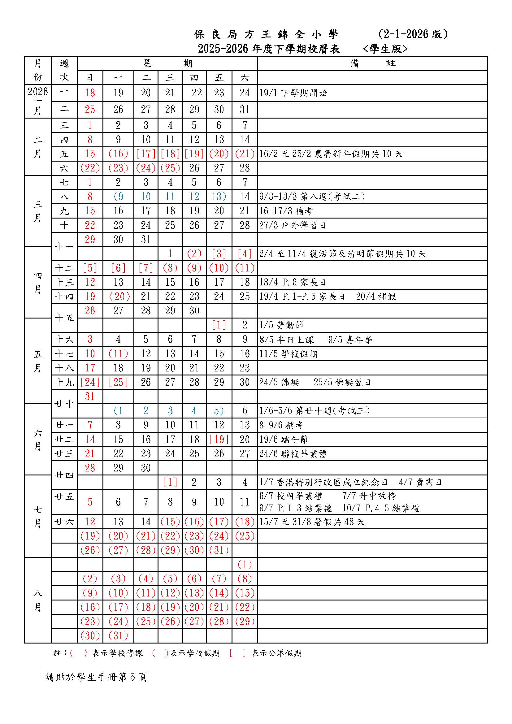 校曆表