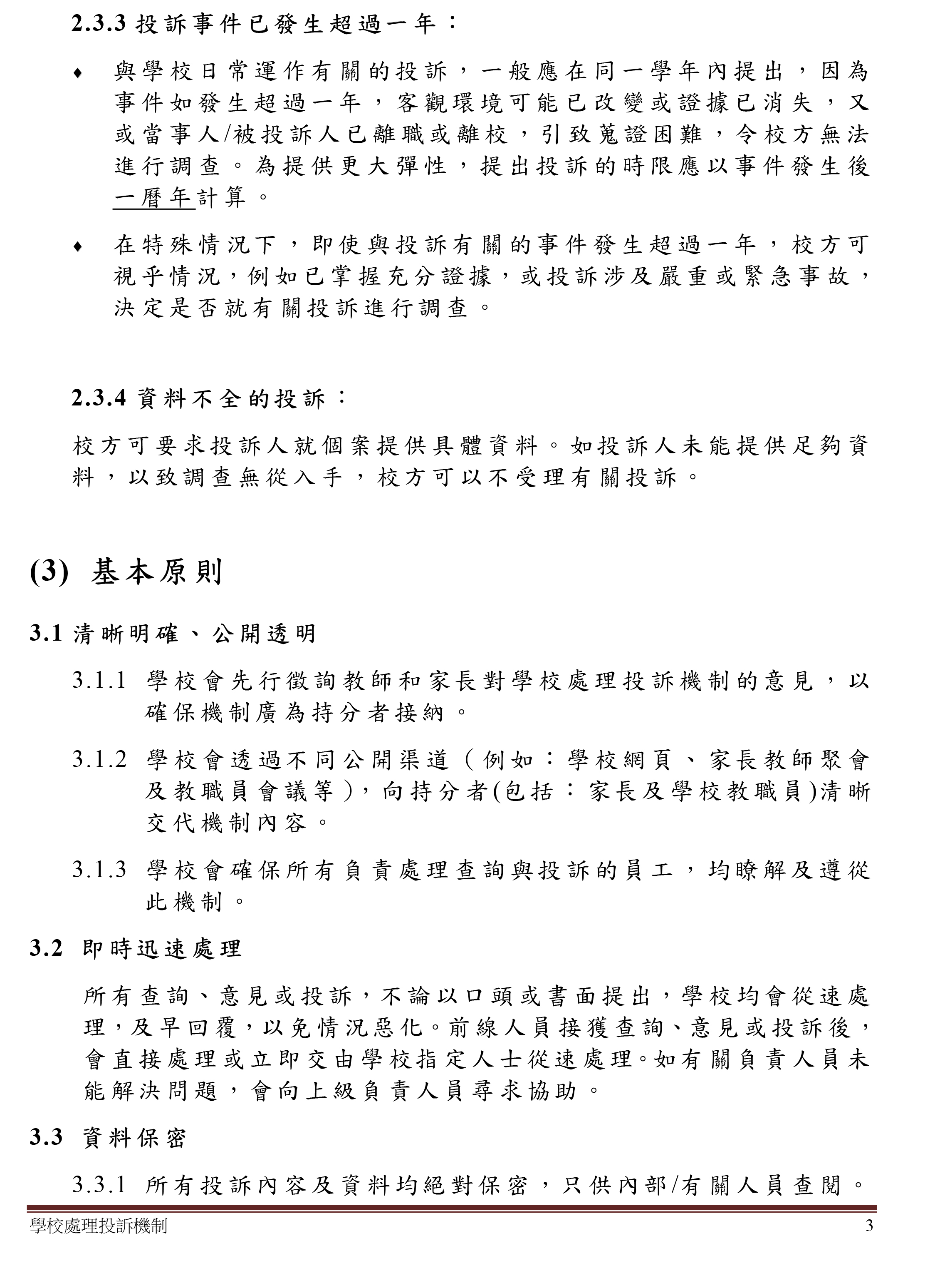 學校處理投訴機制