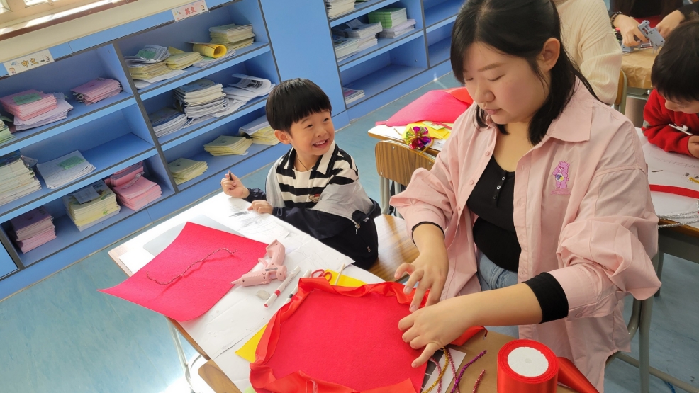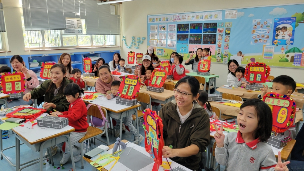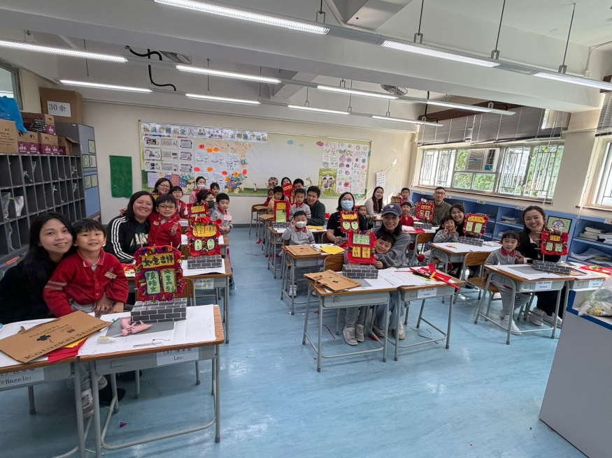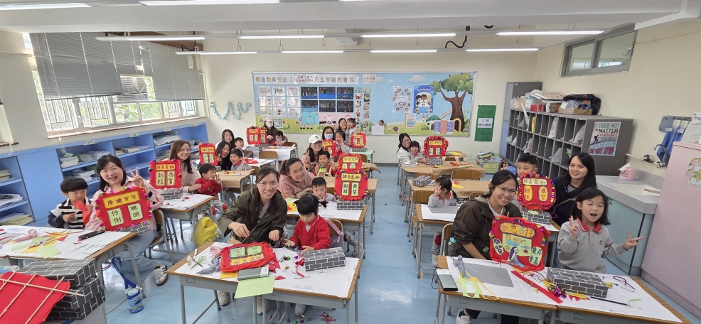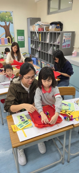 保良局幼小同盟活動:本校邀請保良局蔡冠深幼稚園的學生及家長到本校參加小型花牌紮作工作坊。