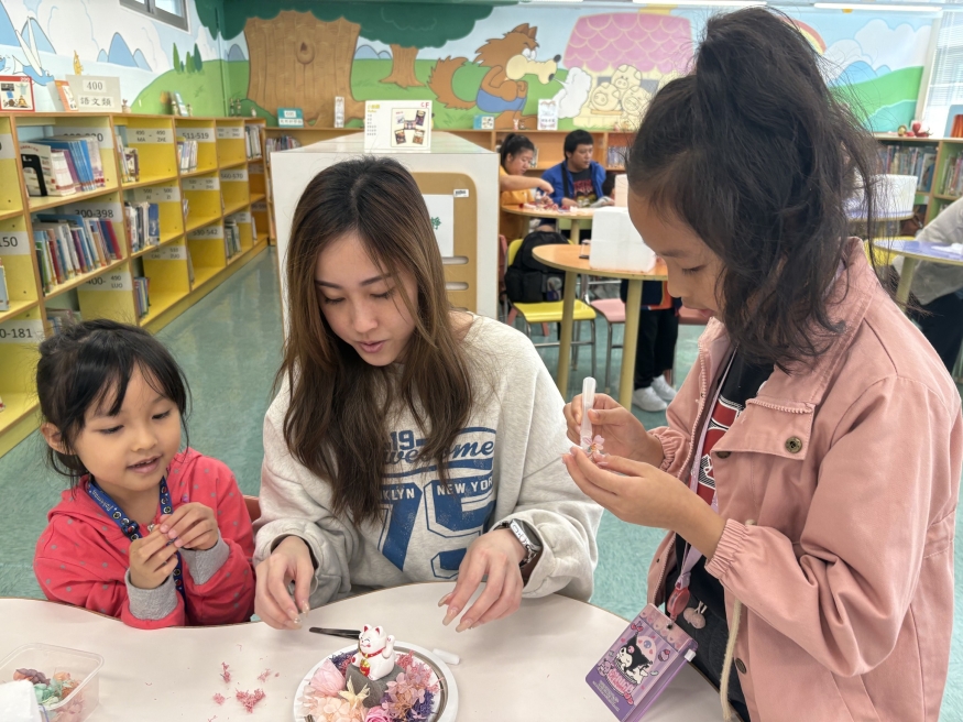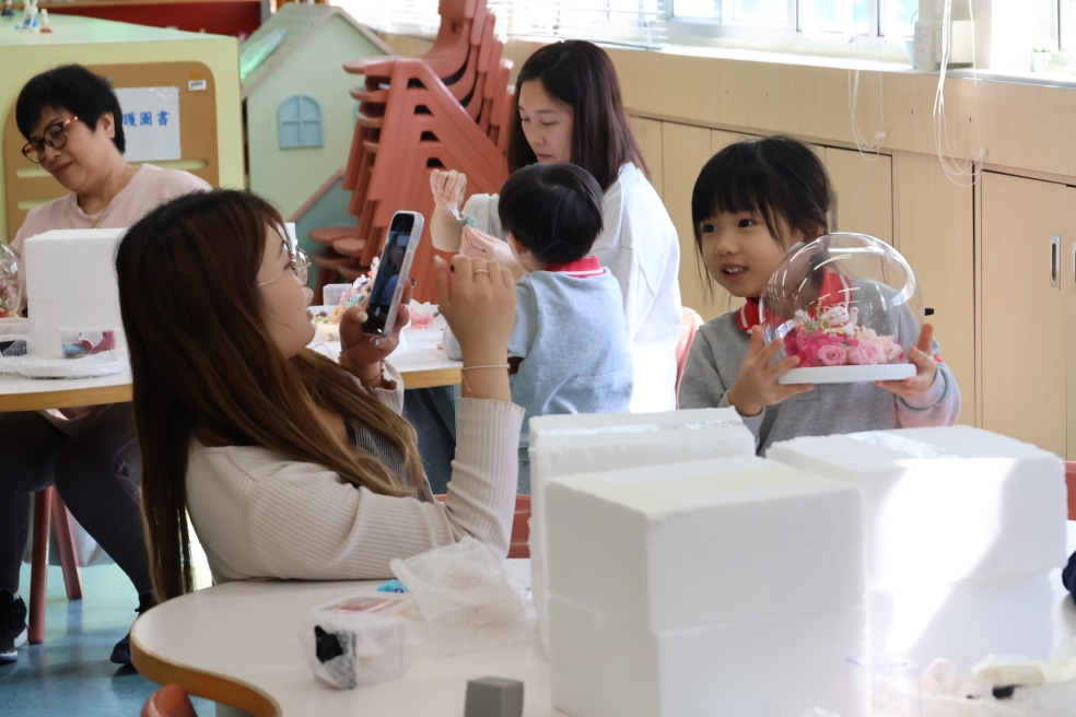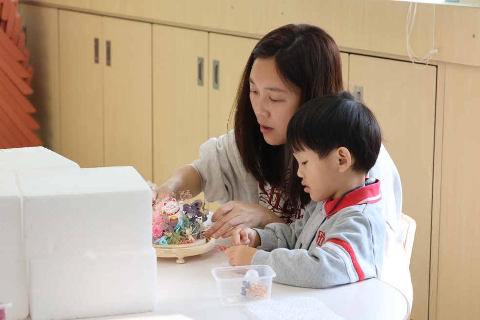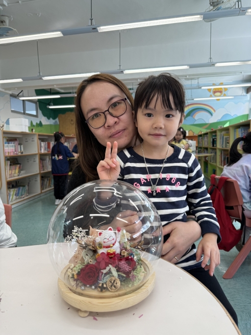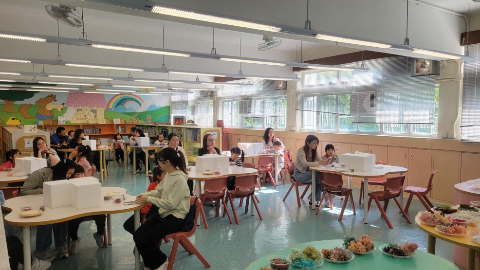 保良局幼小同盟活動:本校邀請保良局廖烈正幼稚園的學生及家長到本校參加靜觀永生花水晶球工作坊。