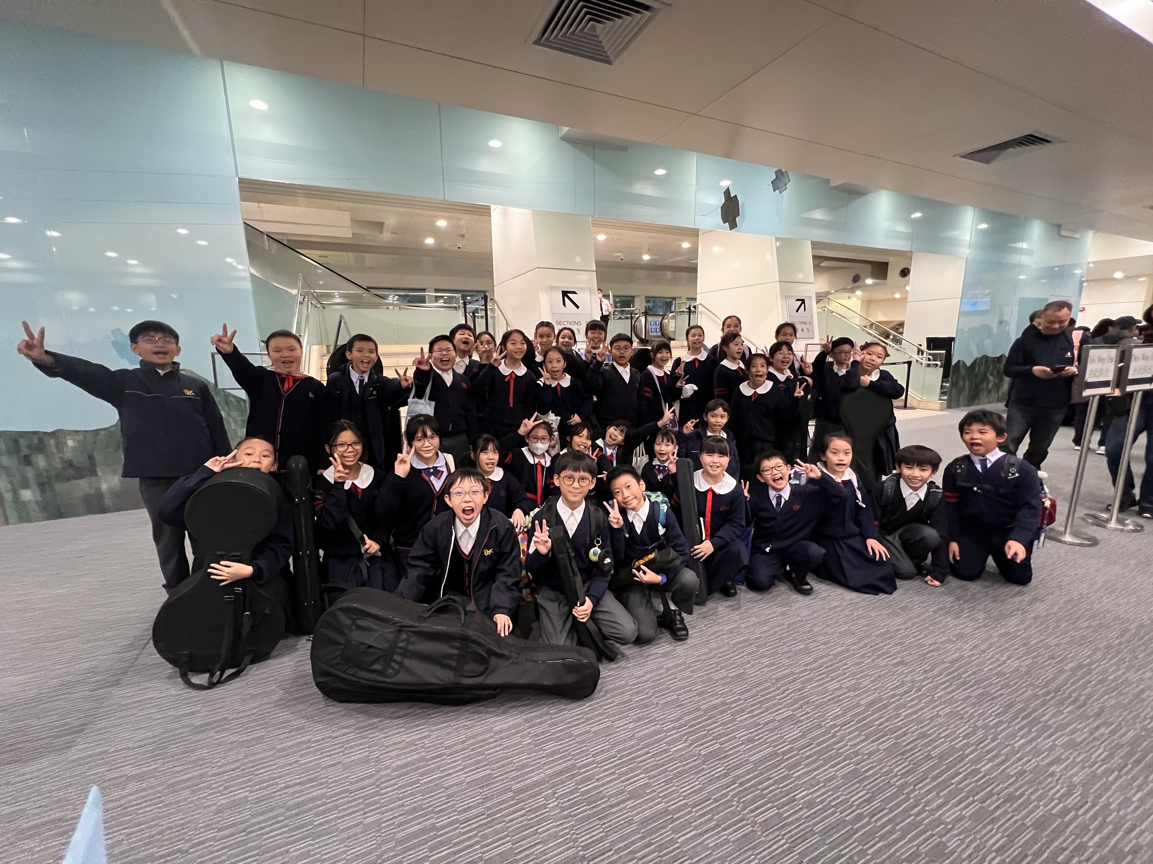 我們在伊利沙伯體育館表演場比賽 開心大合照 專心排練