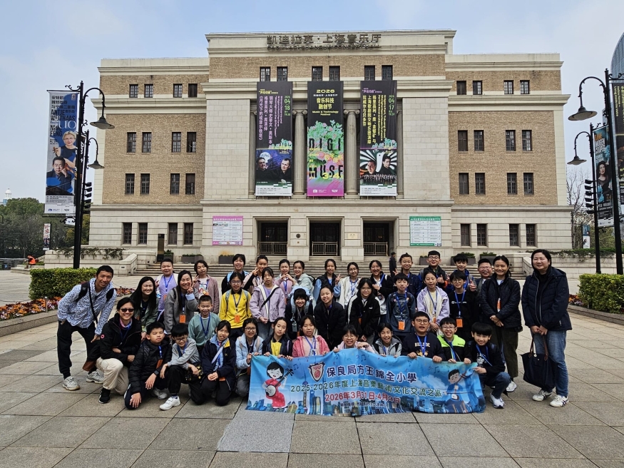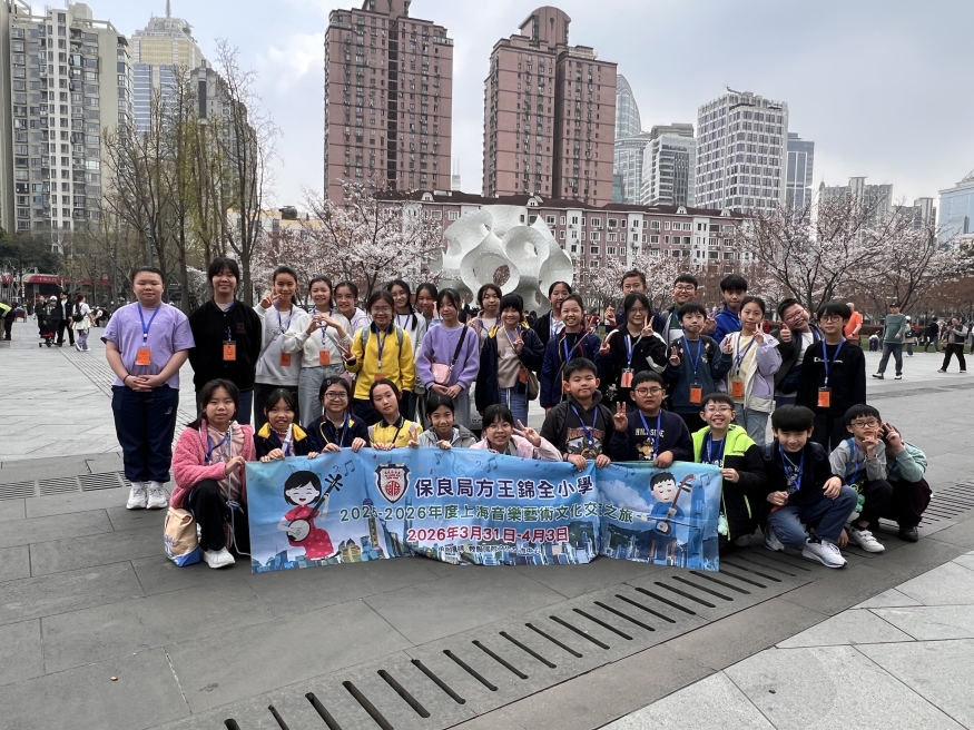 31/3/26-3/4/26本校音樂🎼團隊的同學,參加了上海四天音樂🎼藝術文化交流團👏🏻。藉著探訪上海學校的中樂團-「上海市三女子中學-中樂團」,同學觀摩了國內中樂團的排練,與內地學生進行輕鬆愉快的中樂交流活動,感受不同的中樂音樂活動👍🏻。同學也到了上海民族樂器一廠有限公司體驗樂器製作(二胡),到訪了上海音樂廳、上海磁浮交通科技館、M50創意園、泰康路田子坊、外灘、南京路步行街、上海自然博物館觀賞四維影院4D電影。透過參觀上海的著名景點及參與各種音樂藝術活動,同學不但能廣闊視野,也能親身經歷各地不同的風土人情。