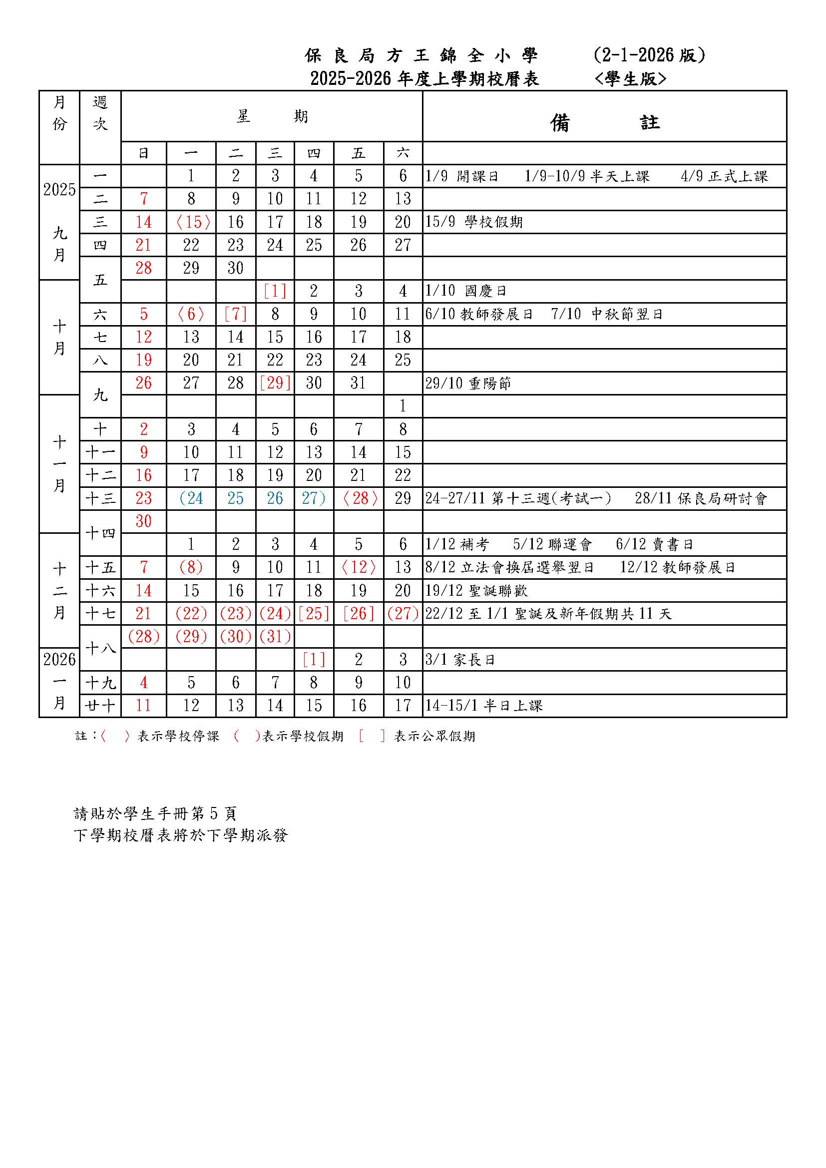 校曆表
