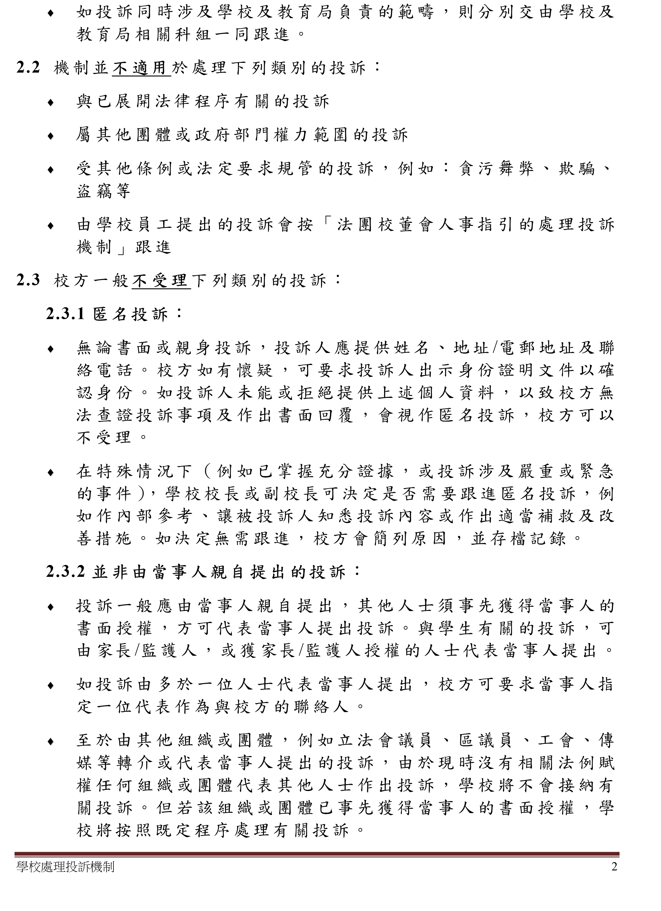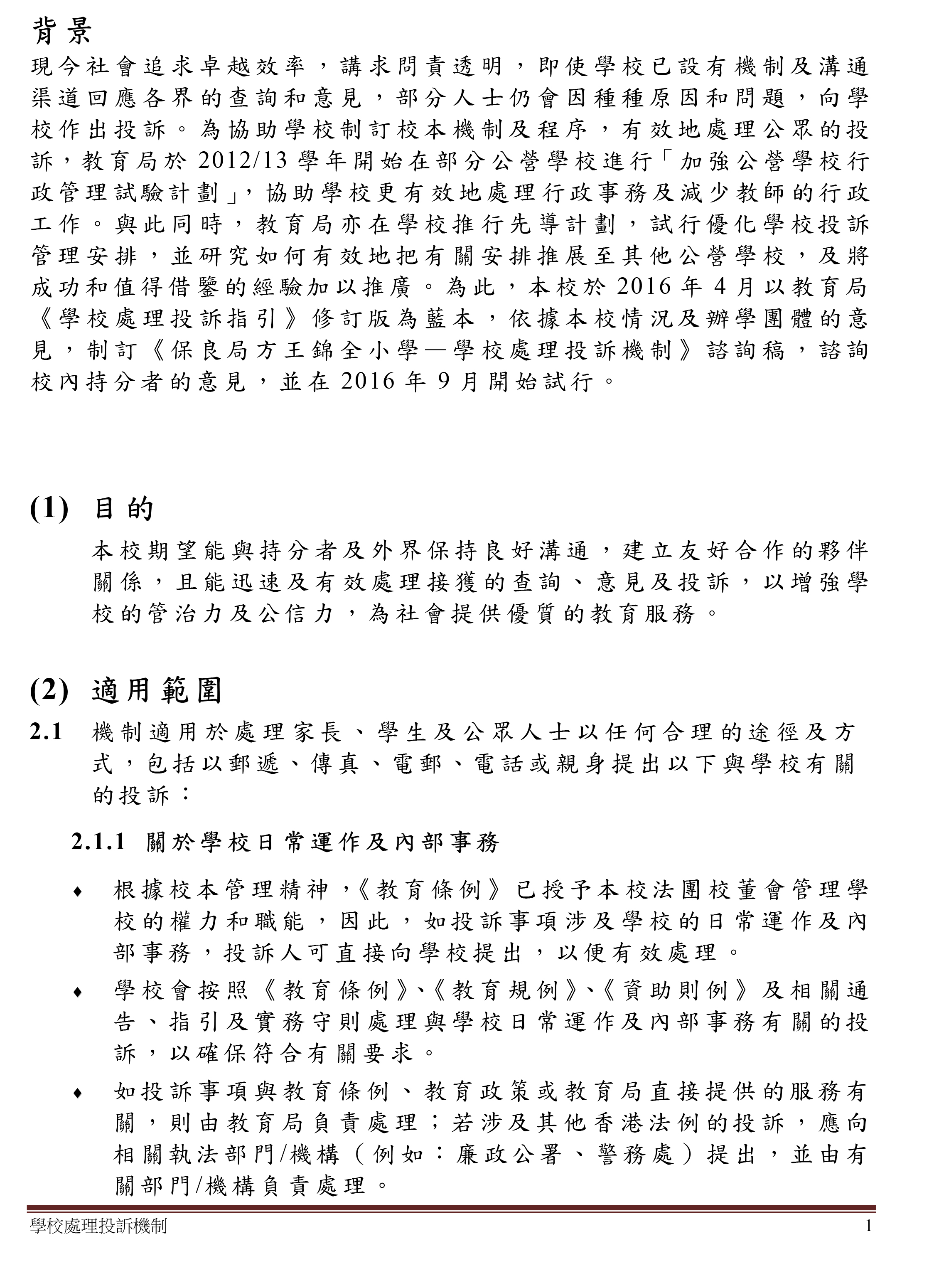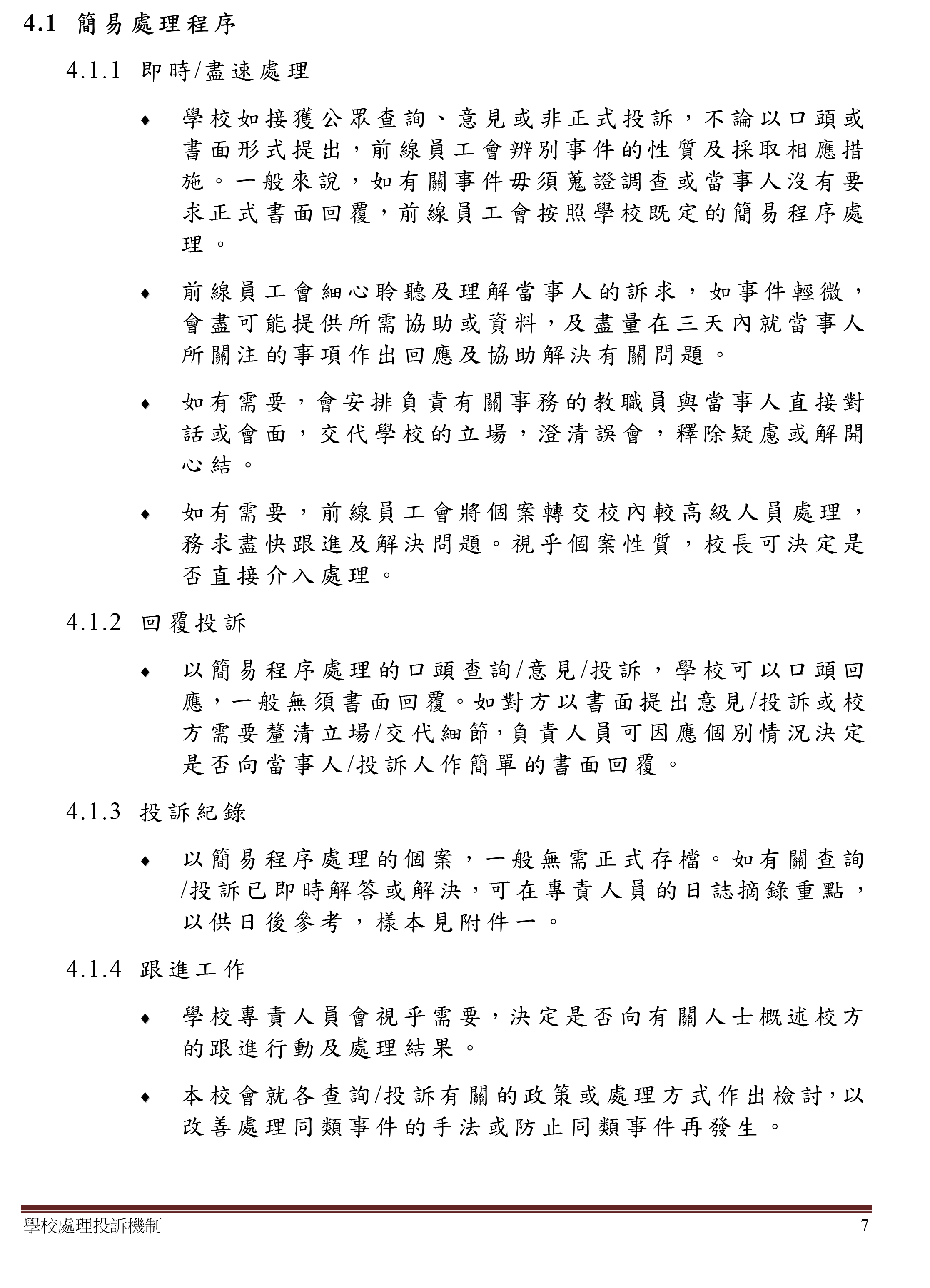 學校處理投訴機制