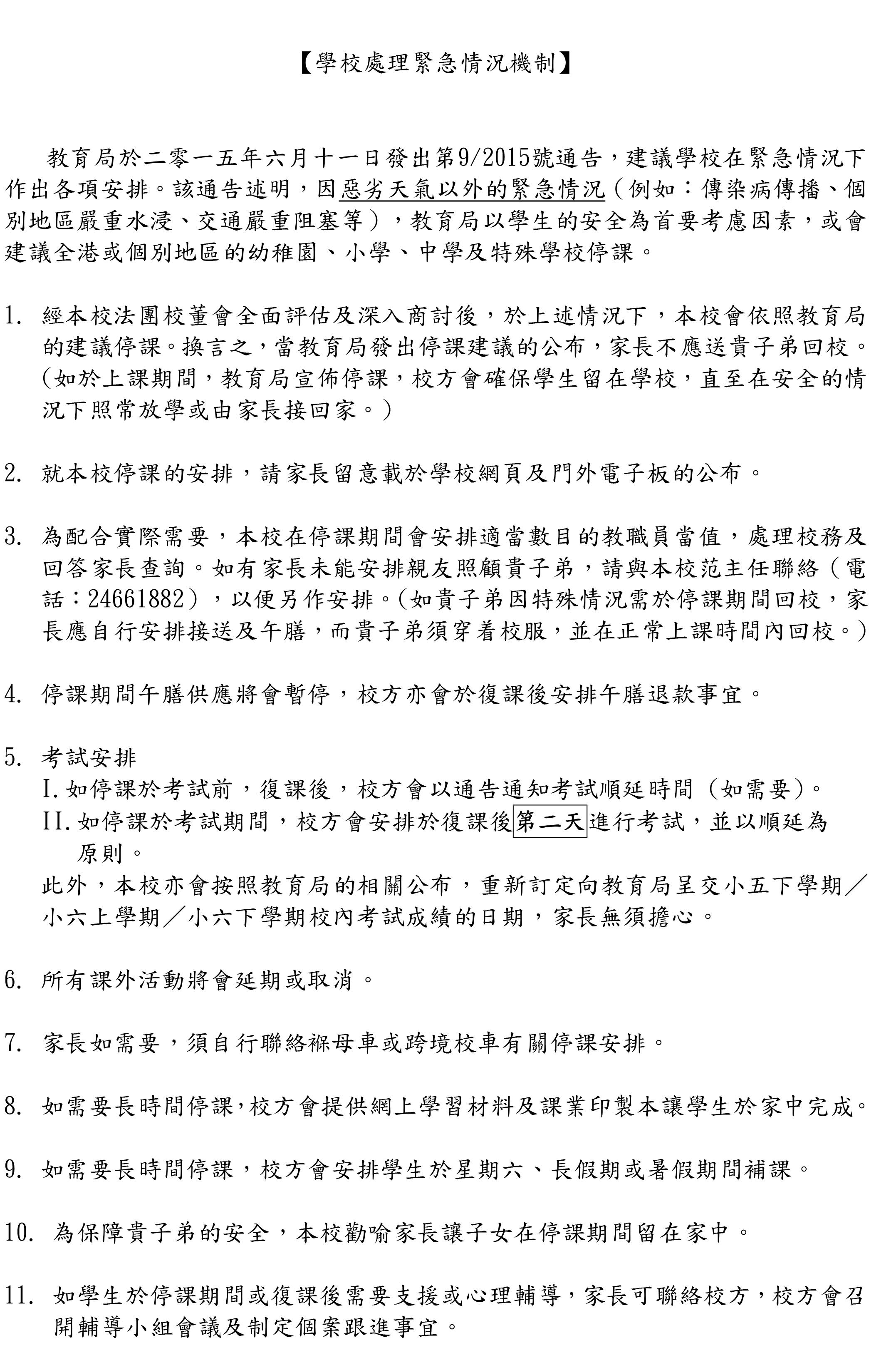 學校處理緊急情況機制