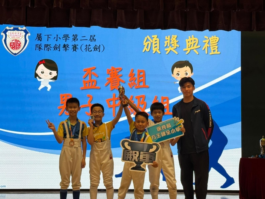 本校於14/6/2025(六)派出五隊花劍隊參加保良局屬下小學第二屆隊制劍擊比賽。當天比賽氣氛激烈,同學能夠與保良局屬下小學的參賽同學一同作賽,實屬難得的機會。是次比賽方小共獲得五個獎項,其中女子幼苗組取得盃賽亞軍;男子中級組榮獲盃賽殿軍,值得鼓勵。希望參賽同學能夠吸收今次的比賽經驗,再接再厲,勇往直前,繼續為自己喜愛的運動努力練習,爭取佳績。